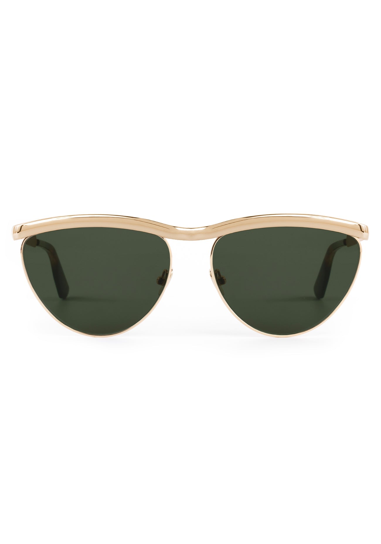 Heidi Sunglasses by Krewe blend strength and elegance with an architectural metal brow bar and upswept lenses that flatter every face shape. Crafted in our signature 18K Chroma innovation, the one-of-a-kind convex mirrored surface adds a futuristic edge to a vintage-inspired design. The Havana frame complements the luxurious gold accents, making these sunglasses a captivating statement from every angle.