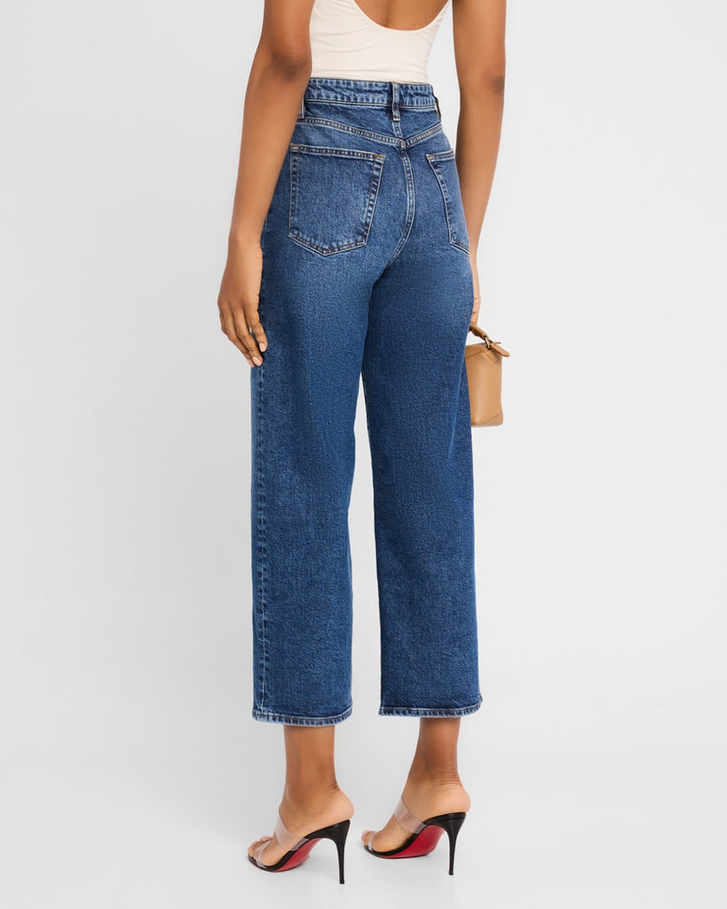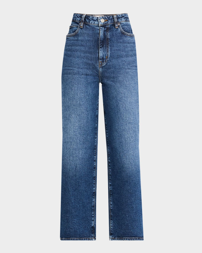 Introducing The Wide Jeans from Frame. These ultra high-rise jeans feature a wearable wide leg for a stylish and comfortable fit. Made from the softest denim with a hint of stretch, they are perfect for sunny days and have slim wide legs anchored by a fitted waist. Elevate your wardrobe with this spring-forward silhouette.
