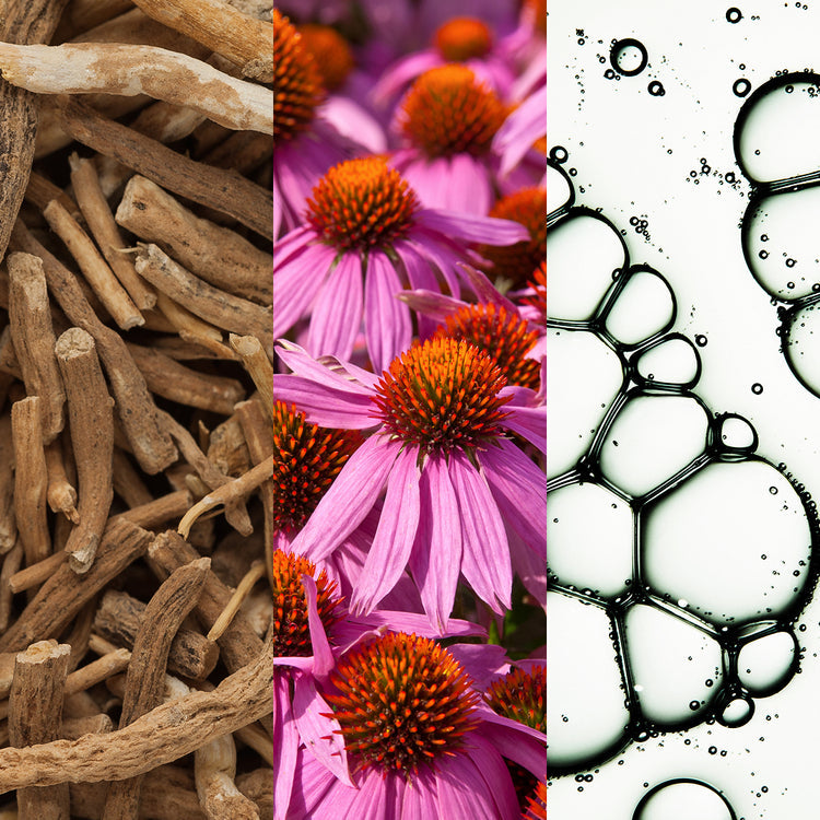 Echinacea Purpurea Extract and Withania Somnifera Root Extract (Ashwagandha) deliver antioxidant and adaptogenic properties.