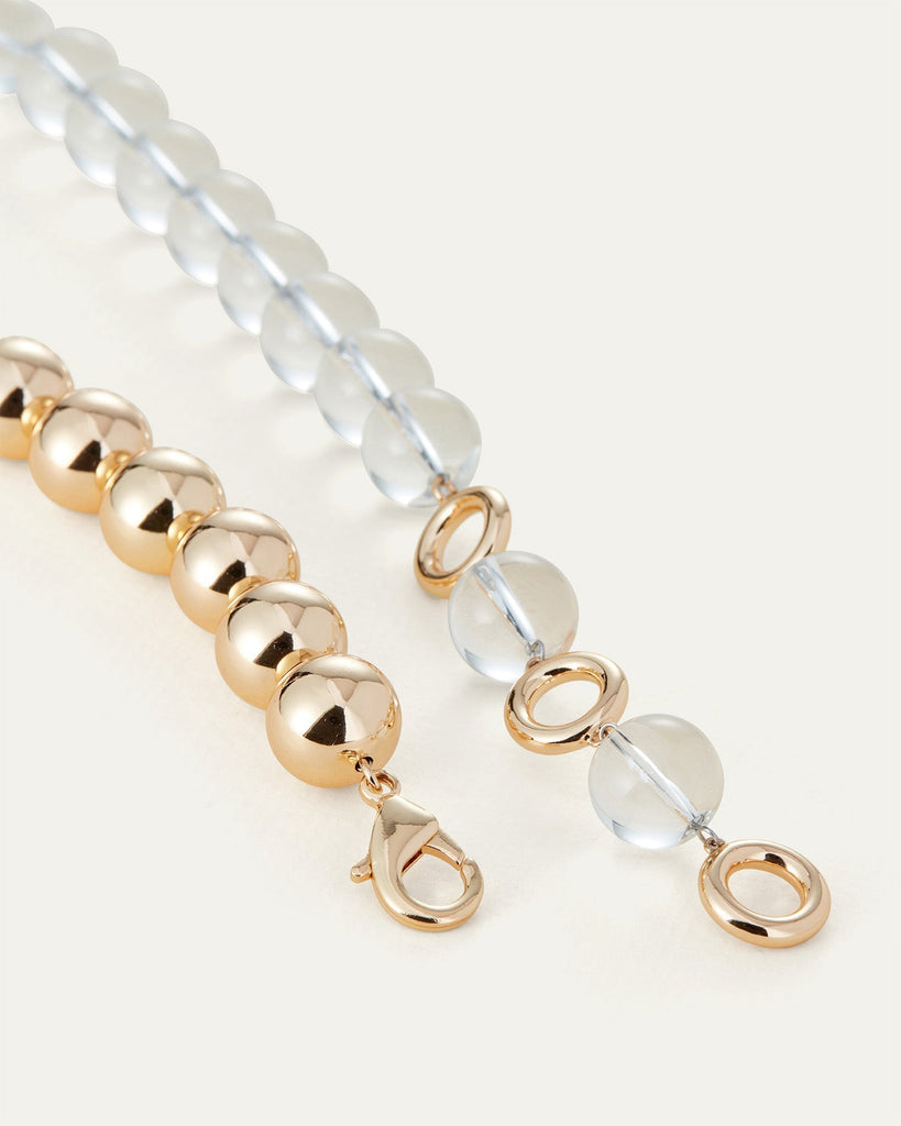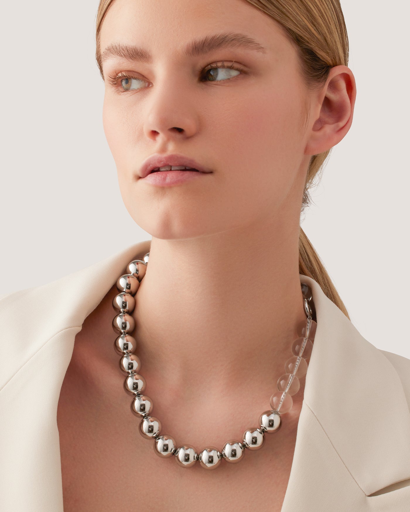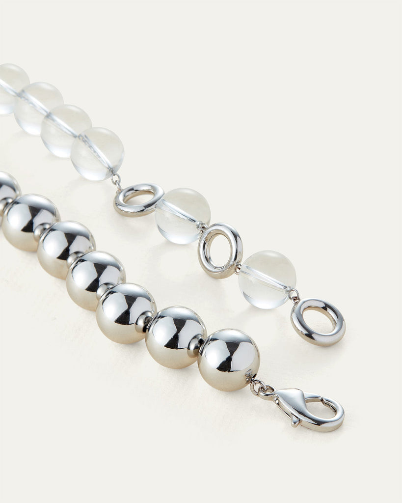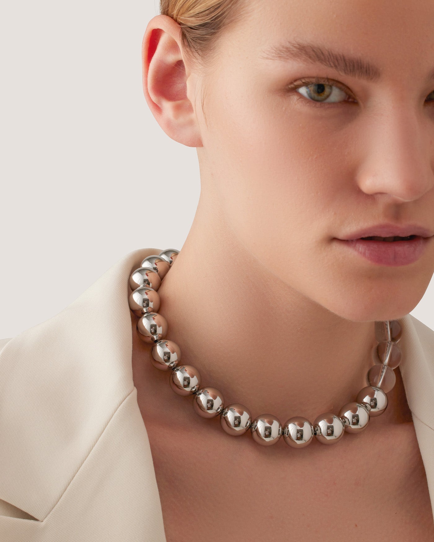 Jenny Bird's, industry expert, bring you the Lyra Necklace featuring large, luminous rhodium and recycled glass spheres on a curb chain. With three non-removable extender rings, this necklace can be easily adjusted to your desired length. Embrace the trendy spherical design and add sparkle to any outfit.