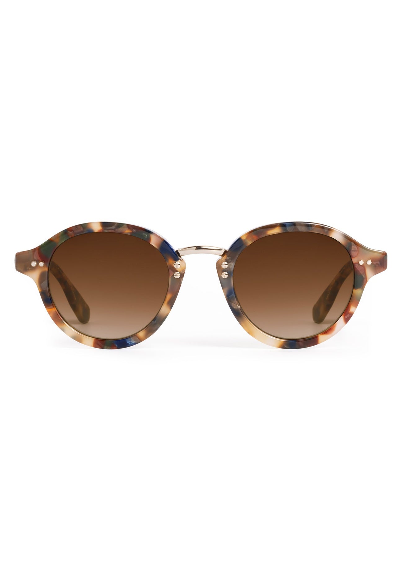 ASHTON Sunglasses by Krewe in Tuscan Tortoise 12K blend artisanal acetate craftsmanship with refined precious metal details for a look that is both elegant and distinctive. The rounded frames, highlighted by a unique metal bridge, offer a subtle yet bold edge, perfect for elevating everyday style with effortless sophistication.