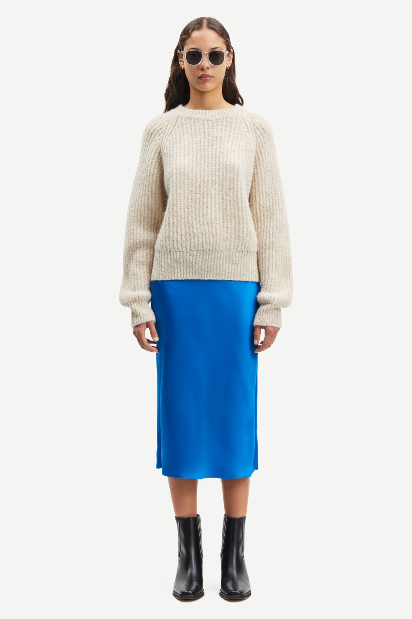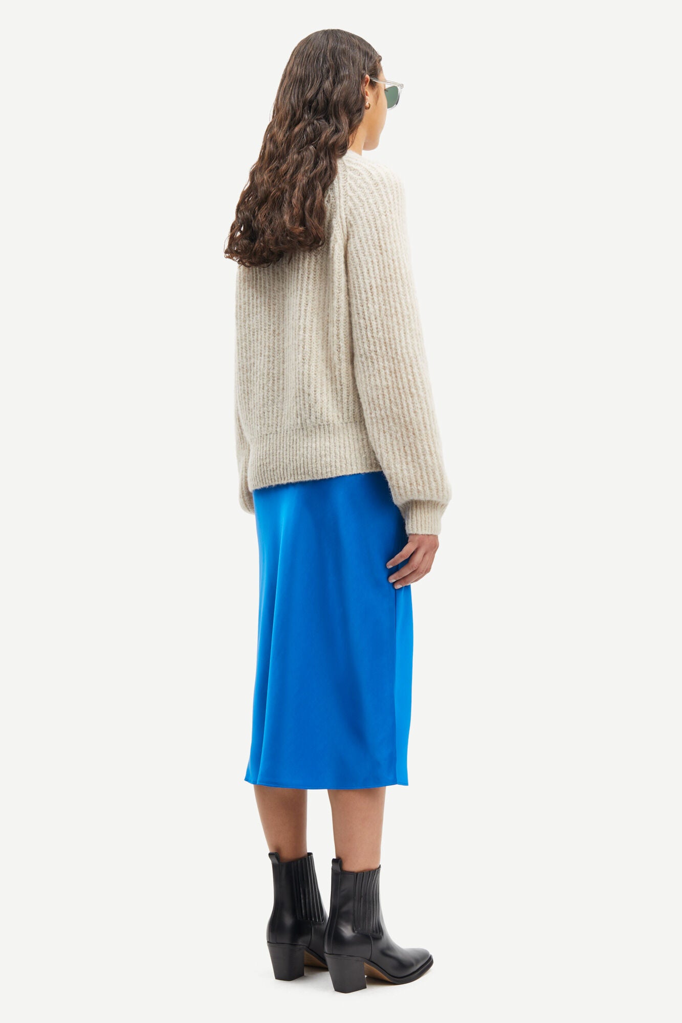 Samsøe Samsøe's expertly crafted for a flattering silhouette, the Agneta Skirt adds a touch of elegance to any look. Its bias cut and flared hem create a soft and sophisticated shape, while the recycled polyester blend fabric boasts a subtle sheen. The decorative waist trim adds a final touch of style to this midi length skirt.