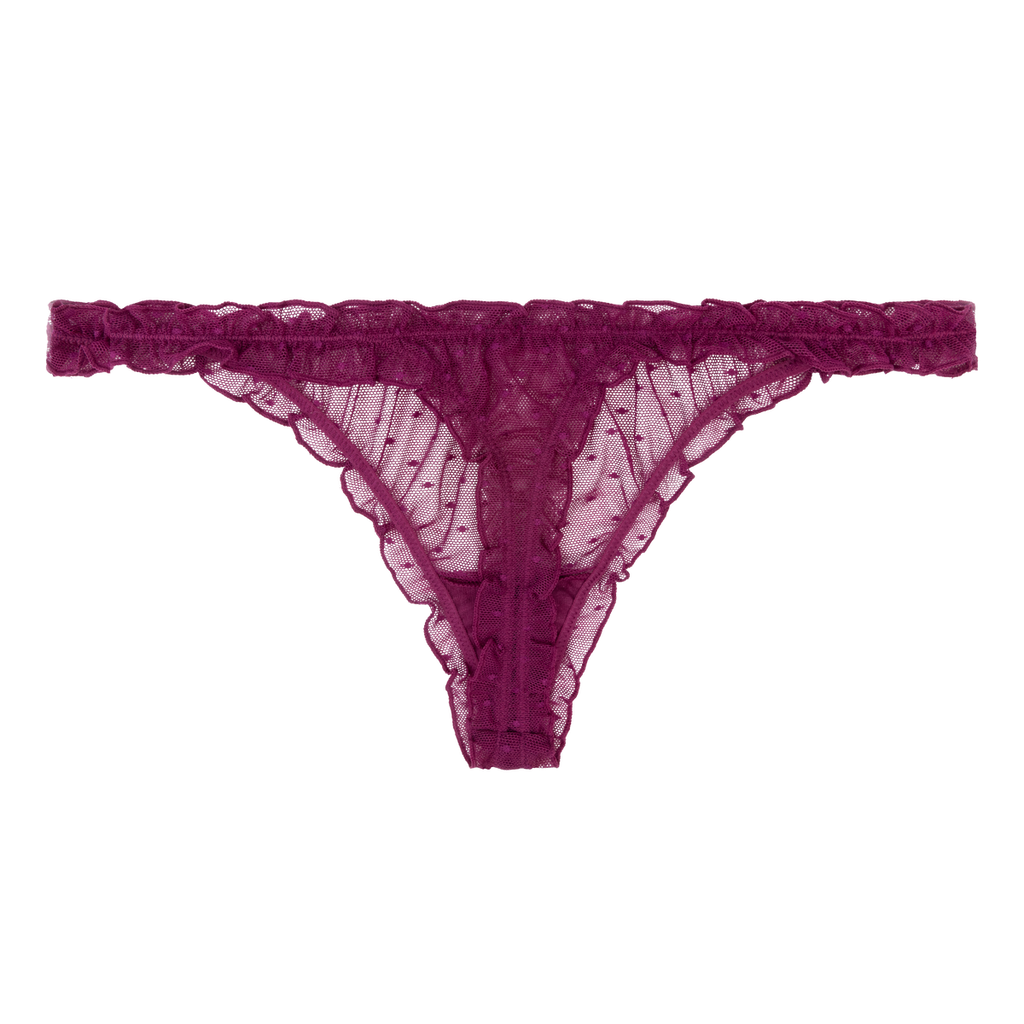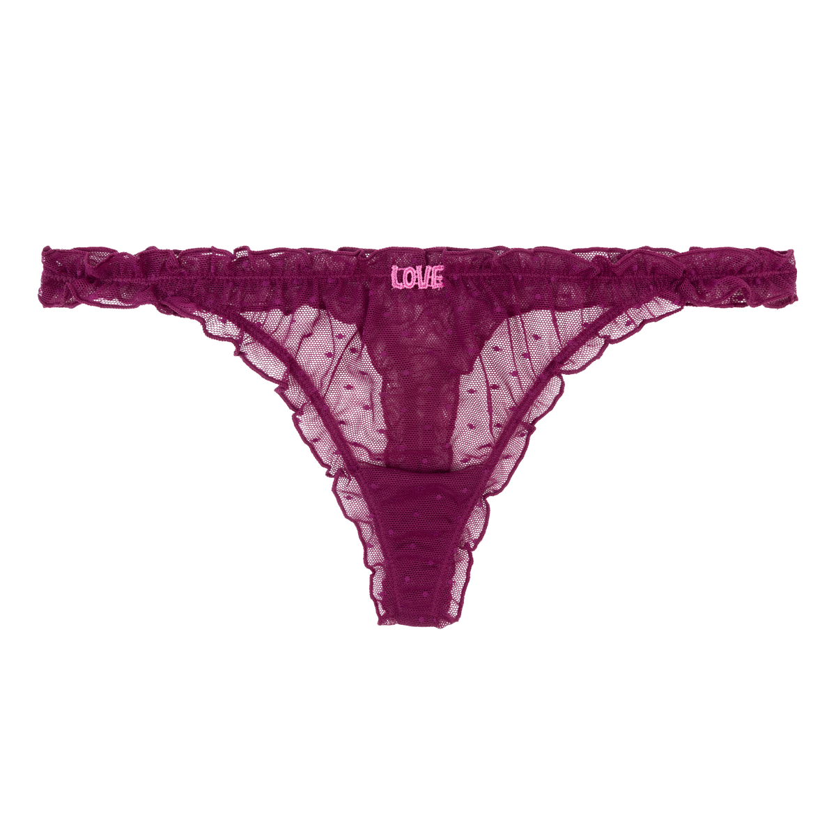 Love Stories experience comfort and luxury with Lana Elegant String Briefs. Soft stretch mesh and ruffled trims lend a sophisticated air, while a hint of romance is provided by the Love applique detail. This thong style is cut with a 100% cotton gusset liner for breathability and comfort, making these briefs the perfect choice for a truly luxurious lingerie experience.