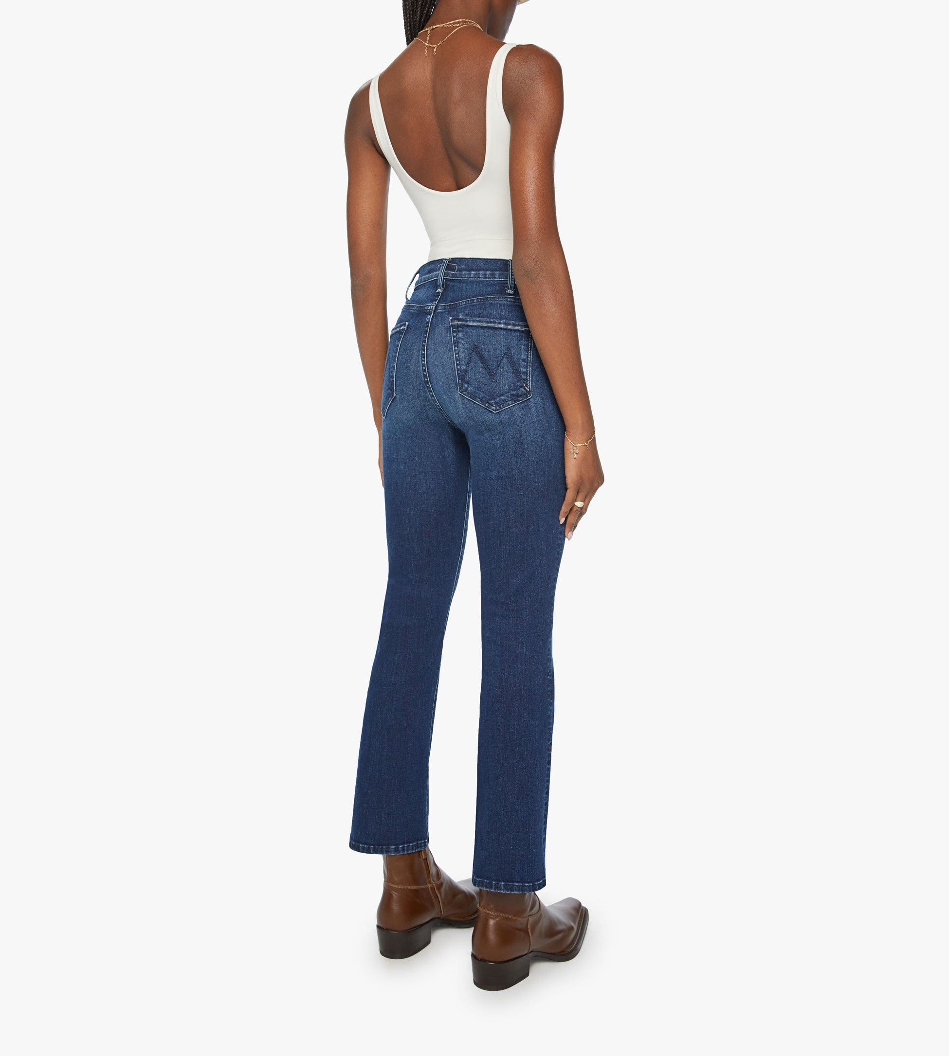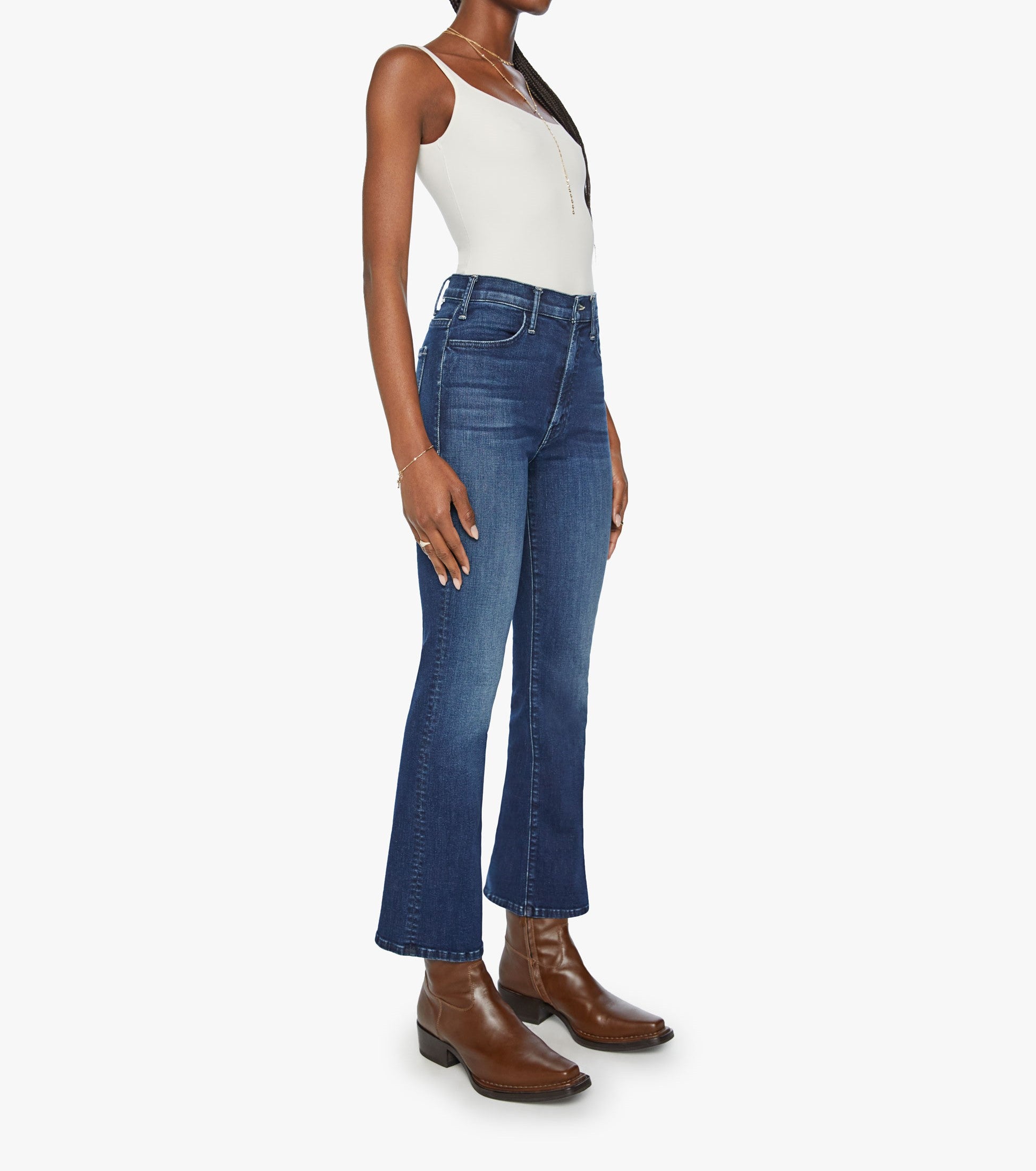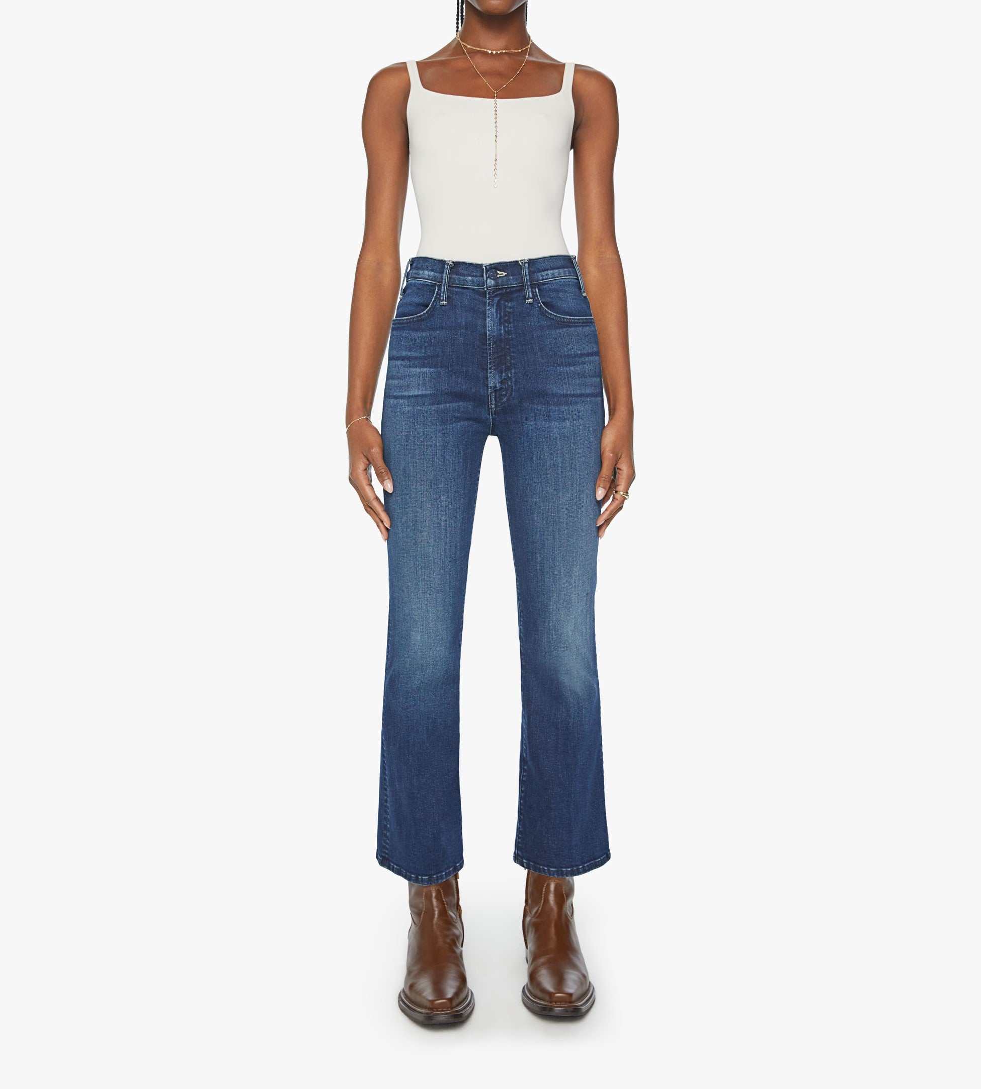 MOTHER's Hustler Ankle Jean is the perfect hybrid of high-waist flare and ankle-length style. Featuring raw hem and stretch denim, it's our bestselling black wash, Not Guilty. Enjoy quality and comfort with every wear.