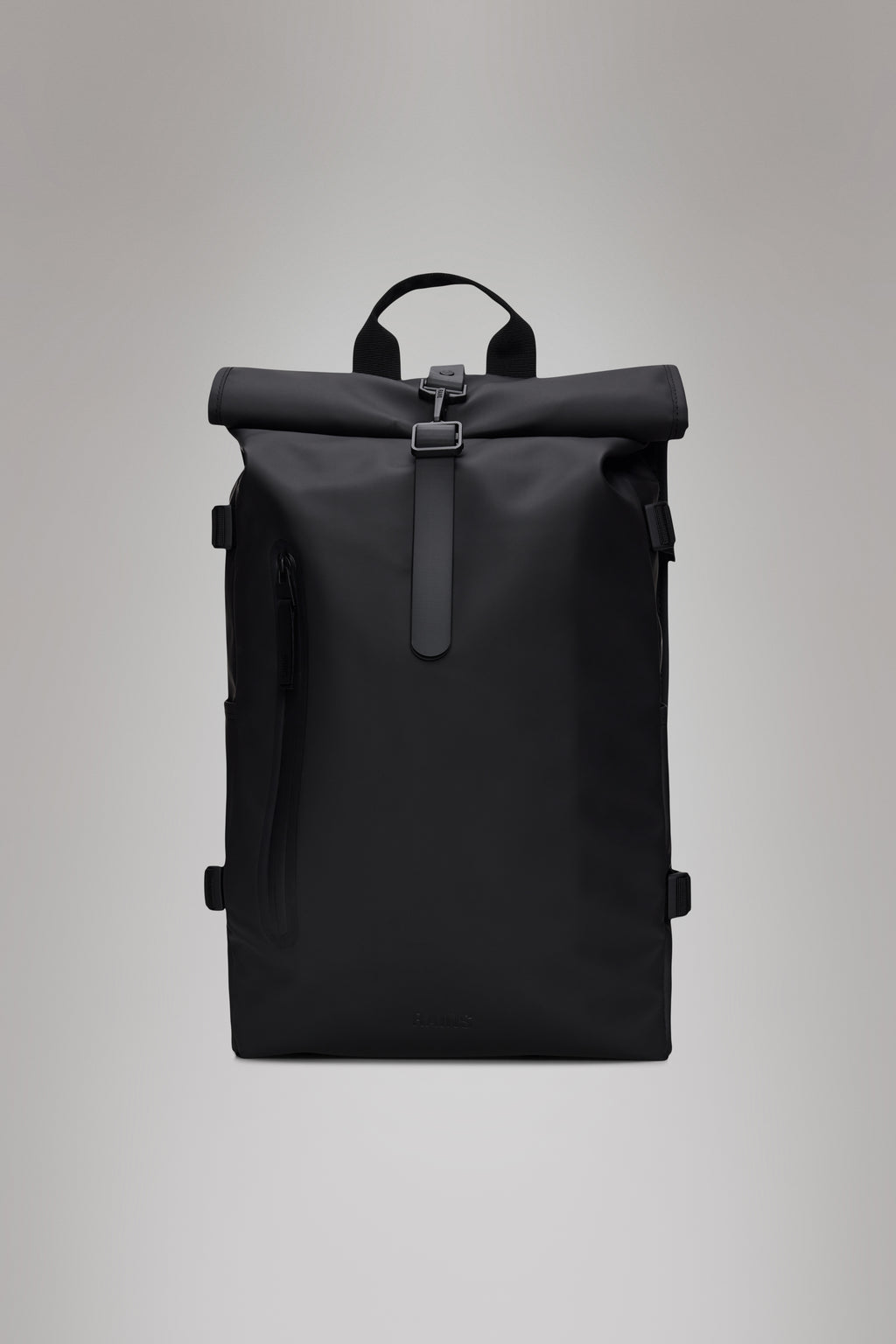 Rolltop Rucksack Large is cut from Rains' signature waterproof PU fabric, engineered for carrying strength, durability and a smooth feel.