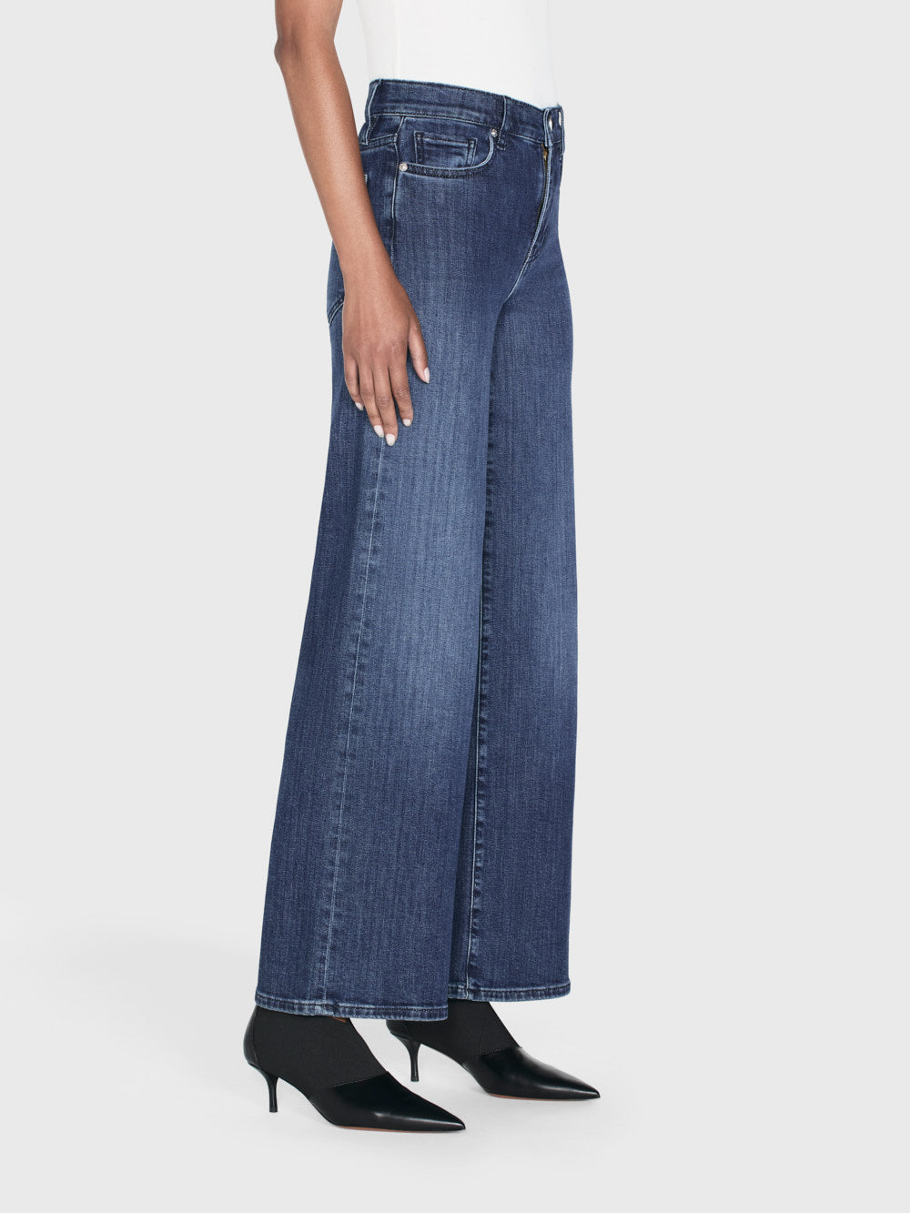 Discover luxury and sophistication with Le Slim Palazzo. This FRAME classic features a high rise, fitted hip, and wide-leg flare for a flattering silhouette that hits the floor. Made from a sustainable, ultra-stretch cotton blend, experience ultimate comfort and style. Elevate your wardrobe with this exclusive palazzo.