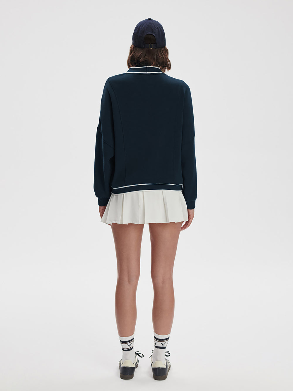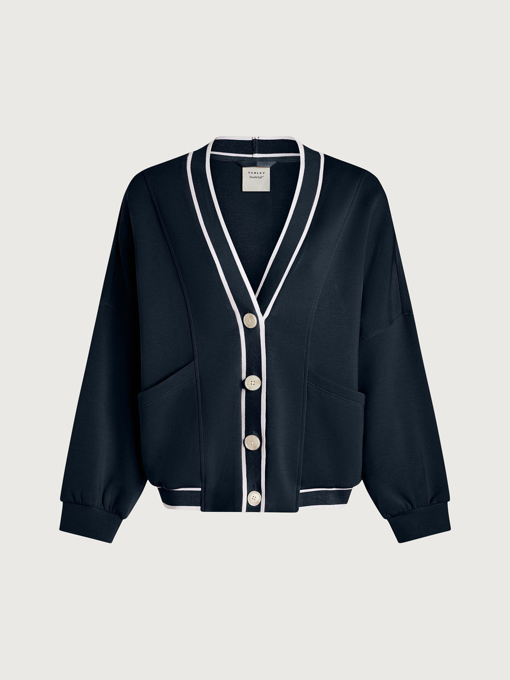 The Decker Off Court Cardigan by Varley embodies effortless elegance for life beyond the court. Constructed in signature DoubleSoft™ fabric, this oversized layer channels timeless country club sophistication with its boxy silhouette and exaggerated dolman sleeves. Thoughtfully designed with dropped shoulders, functional hand pockets, and refined stripe trim detailing, it's the perfect post-game throw-on that transitions seamlessly from pickleball to casual gatherings. A versatile essential that balances comfort with understated style.