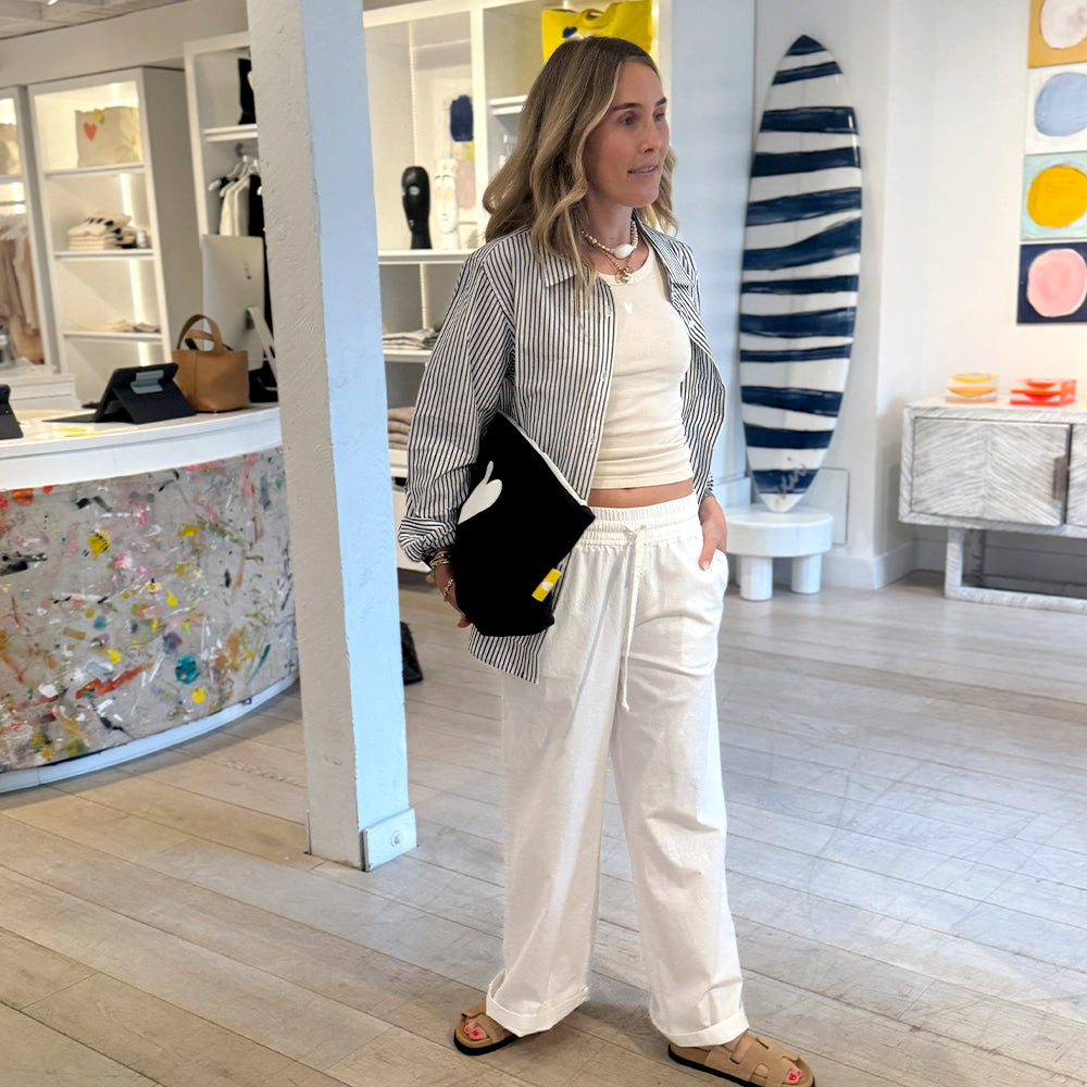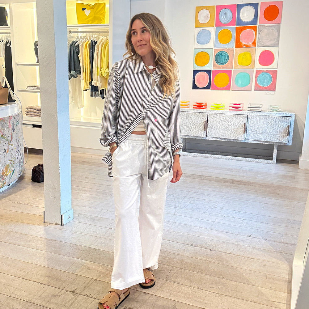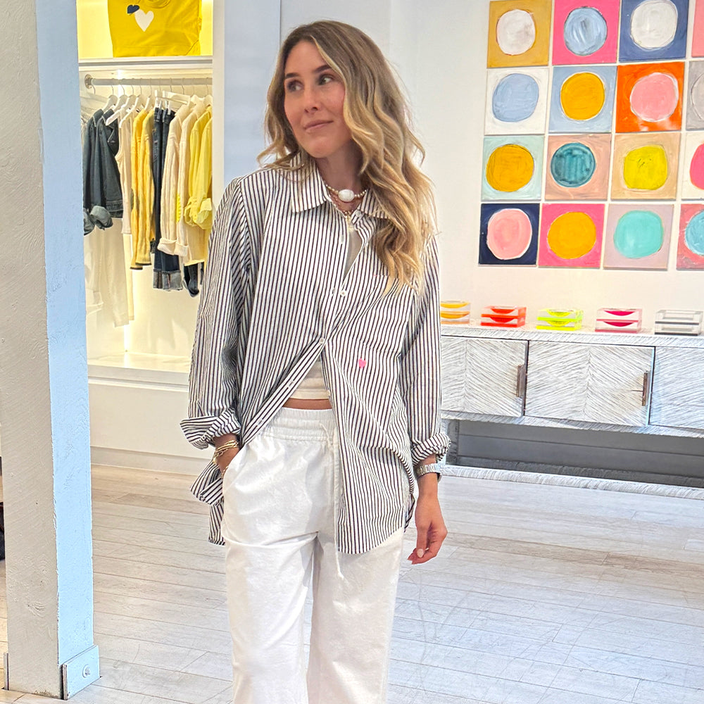 Experience refined comfort with the Mia Shirt Stripe from Kerri Rosenthal, crafted from super soft, lightweight cotton for effortless wear. Featuring subtle tonal heart patches and vibrant neon pink stitching, this updated classic adds a unique, sophisticated touch to your wardrobe. Perfect for those who appreciate understated details with a modern twist.