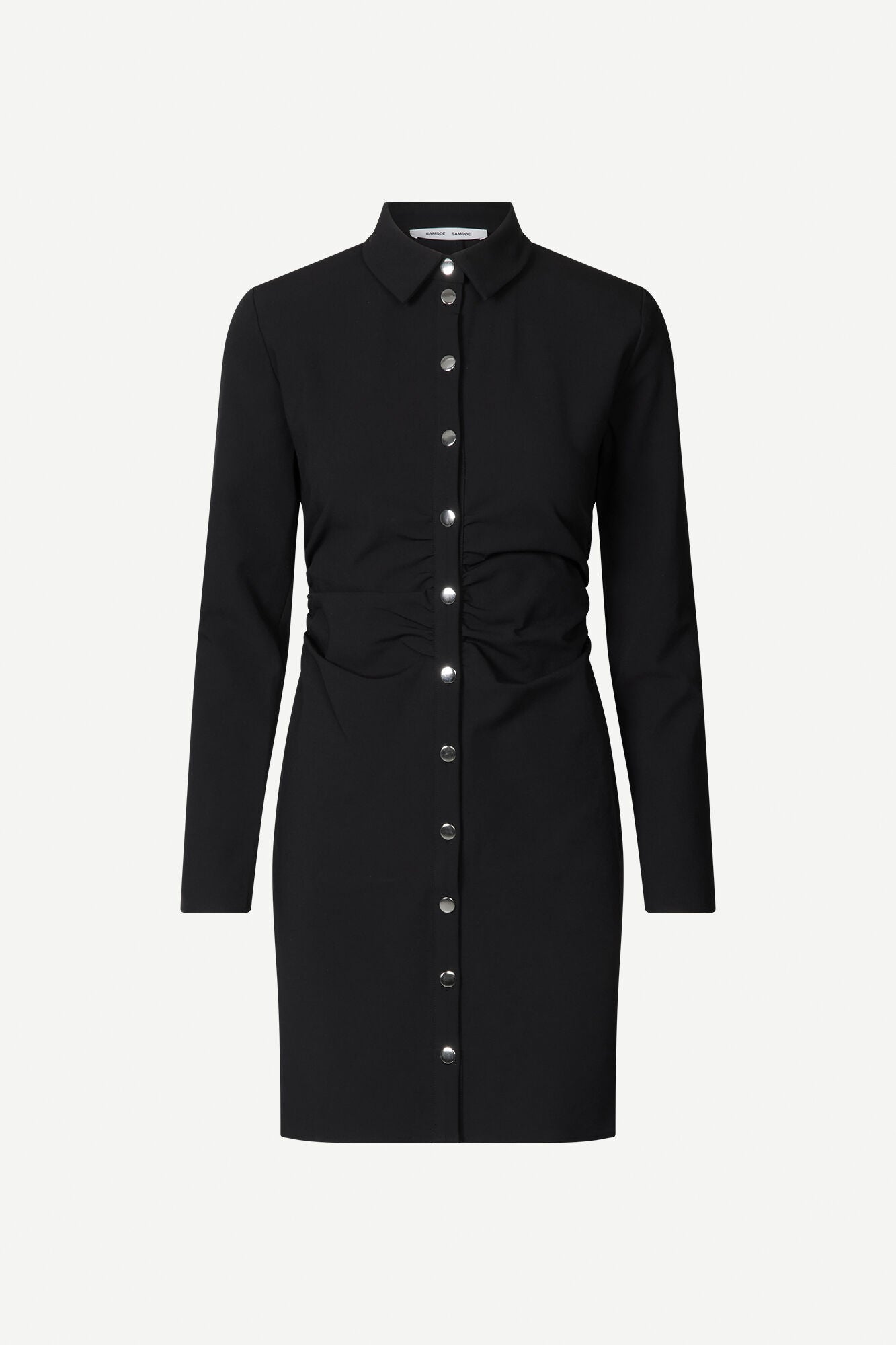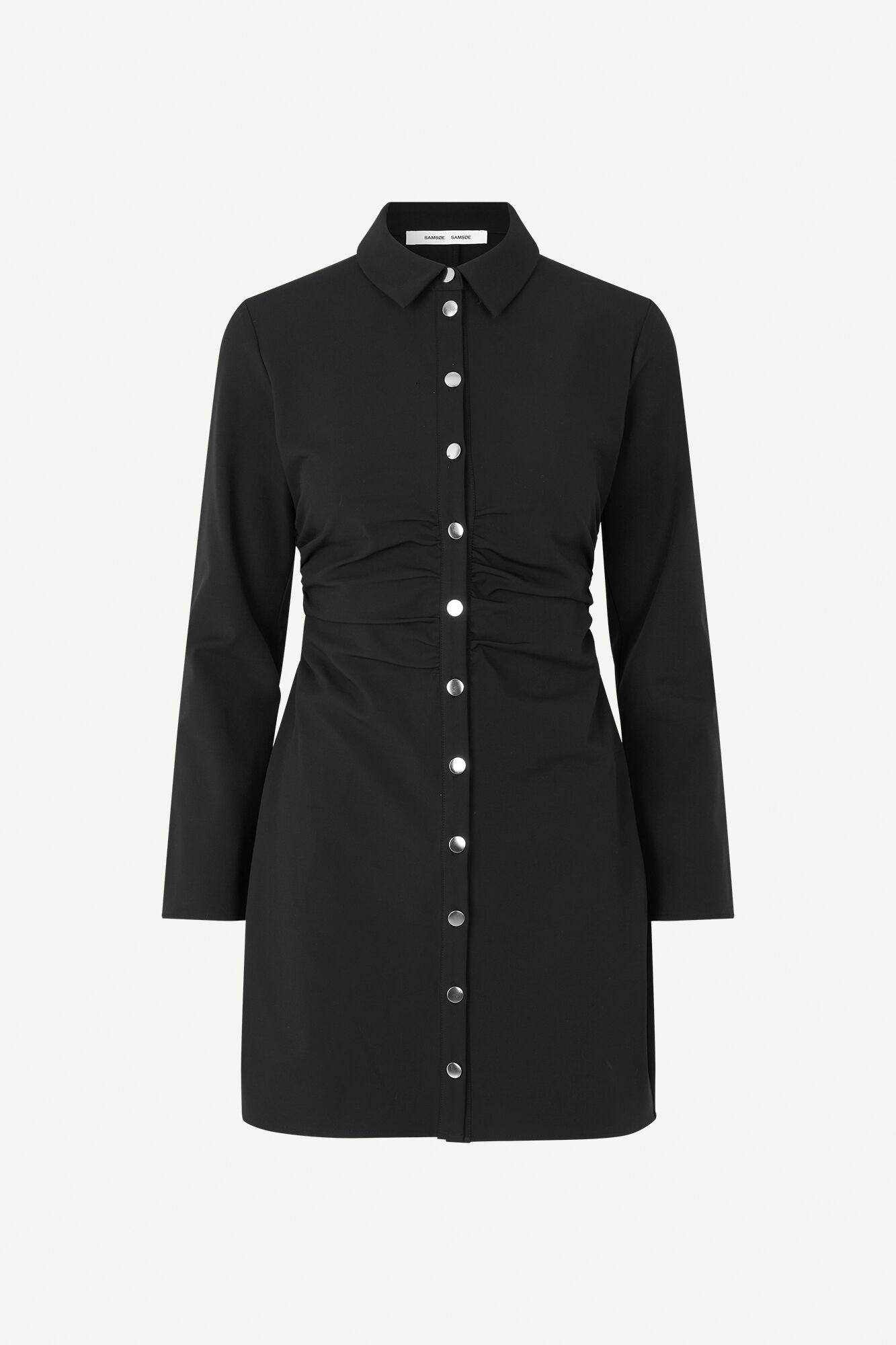 El vestido Jolina de Samsøe Samsøe es la elección perfecta para cualquier evento nocturno elegante. Confeccionado con una mezcla elástica de viscosa y poliamida, este vestido camisero de corte ajustado irradia lujo con su cuello puntiagudo, cierre de botones metálicos y detalle fruncido en la cintura. Sus mangas largas aportan un aire de sofisticación haciendo de Jolina la elección perfecta para quienes buscan algo exclusivo.