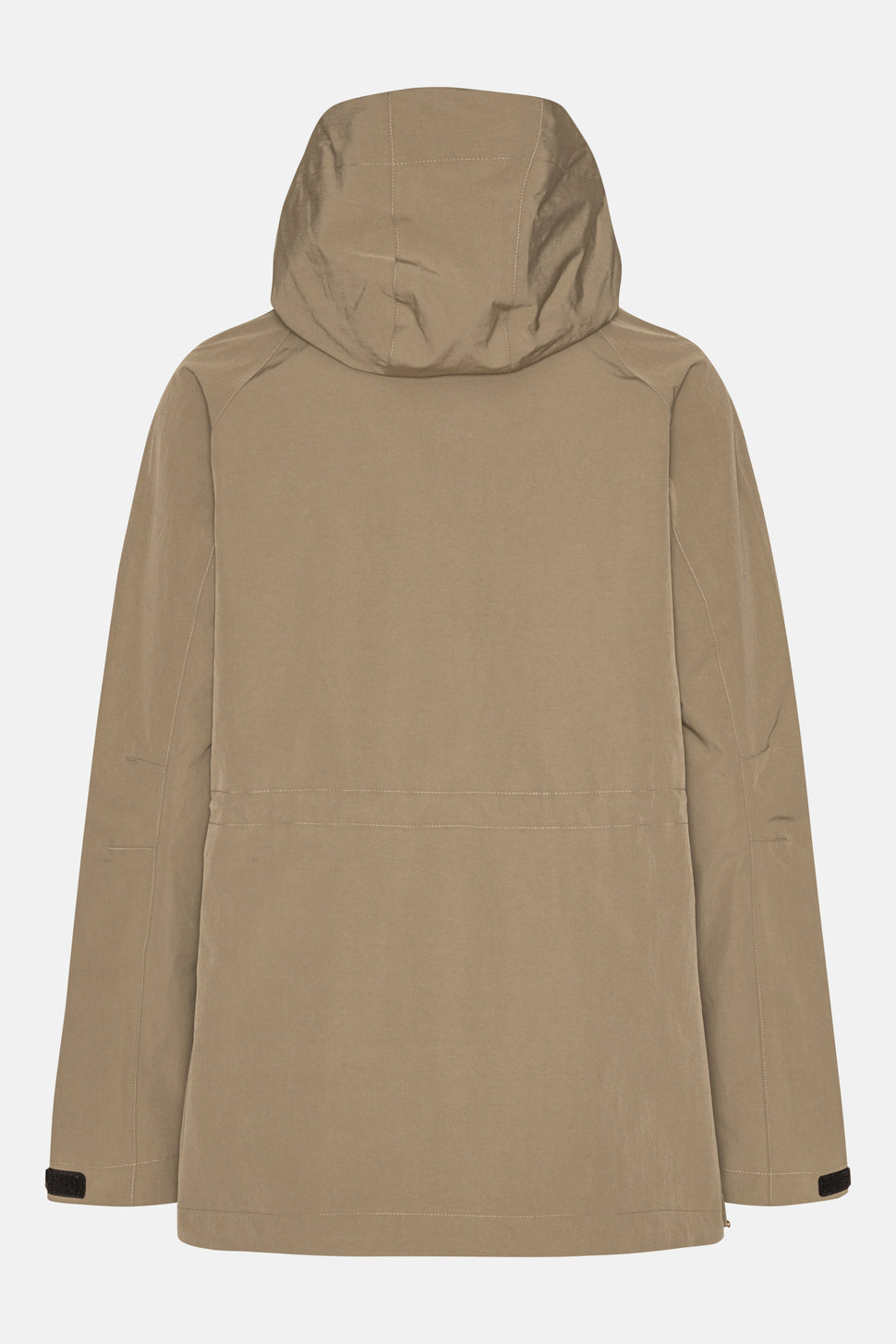 Introducing Ilse Jacobsen's Technical Raincoat in Greige - a blend of style and functionality. Made from ripstop fabric with Ecorepel® technology, it repels water and dirt, perfect for medium to heavy rain. Features include a practical hood, AquaGuard® zippers, and an adjustable waist for a flattering fit. Stay dry and stylish, rain or shine.