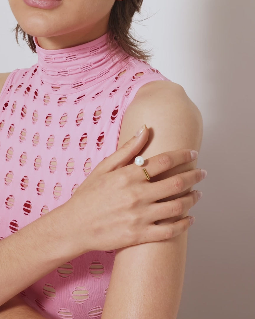 El exclusivo anillo Nova de Jenny Bird cuenta con una exquisita combinación de perlas de vidrio luminosas y ángulos modernos, elaborados por expertos para crear una estética innegablemente lujosa. Con un acabado en oro pulido, es una pieza exquisita que dejará una impresión duradera.