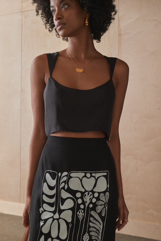 Elevate your warm weather look with Sancia's Matilda Top. Crafted from a luxurious cupro blend, this elegant top features thick shoulder straps and a flattering waist-length cut. Style with any pants for versatile sophistication.