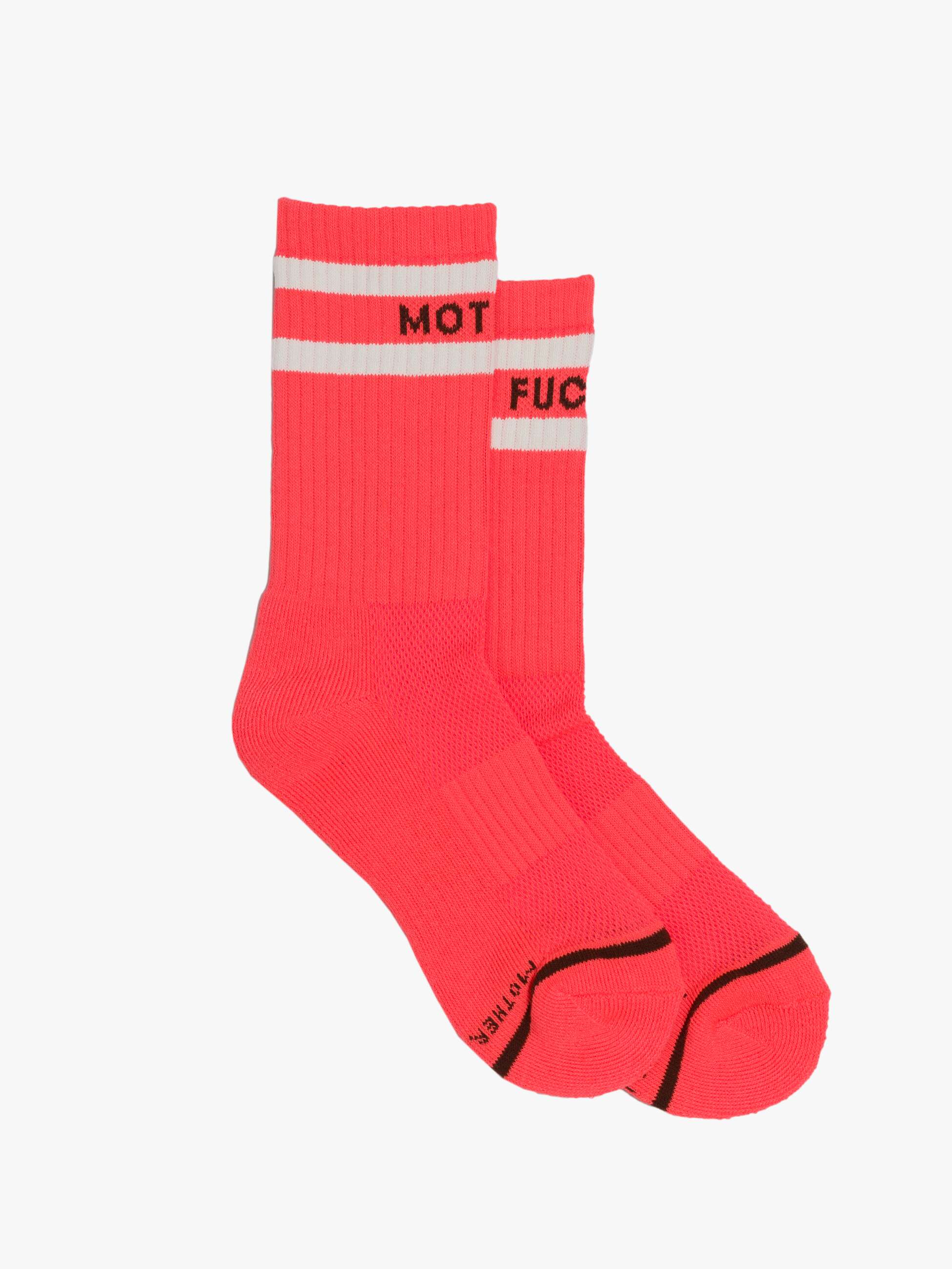 Elevate your everyday essentials with these Baby Steps Socks by MOTHER. Featuring a timeless tube design in vibrant neon pink, accented with refined brown lettering and subtle cream details, they blend classic style with a confident statement. Perfect for adding a touch of sophistication and personality to your wardrobe.