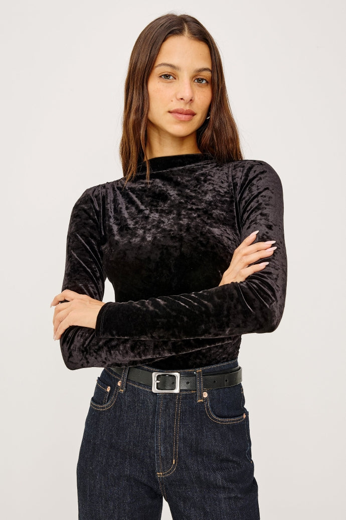 The Joelle Top by Rails reimagines the timeless long sleeve with contemporary elegance. Constructed from luxuriously soft gauge jersey, this piece features a distinctive asymmetrical mock neck adorned with refined shirring details that cascade from the right shoulder. A modern silhouette that effortlessly transitions from day to evening, offering both comfort and understated sophistication.