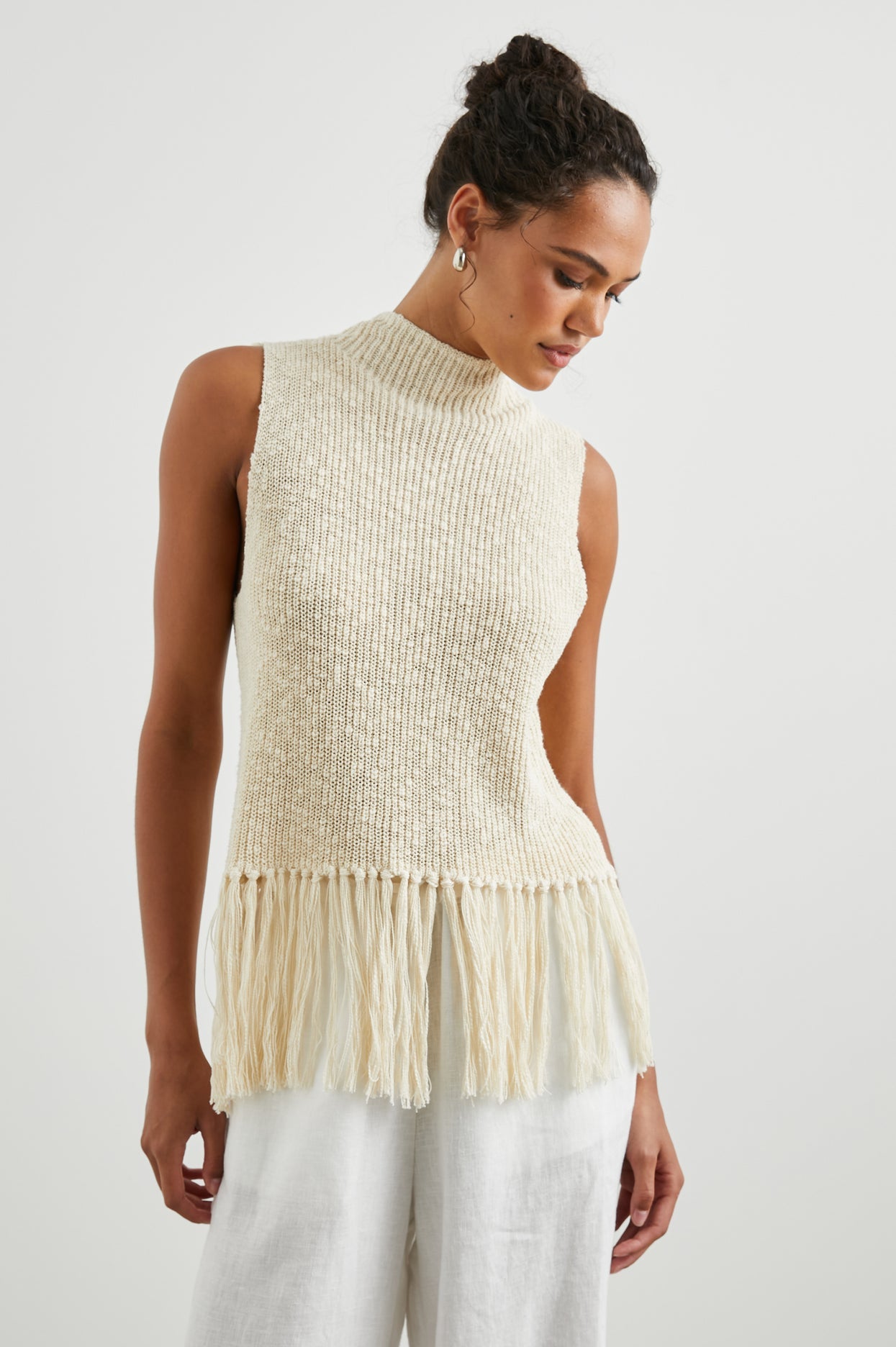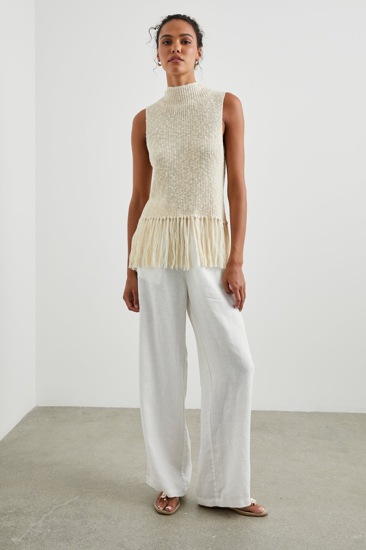 Rails Astrid Top, is a luxurious piece that exudes effortless style. With a flattering high neckline and on-trend fringe bottom, this top adds a touch of uniqueness to any outfit. Pair it with a skirt, jeans, or trousers for a truly one-of-a-kind look. Elevate your wardrobe with the Astrid.