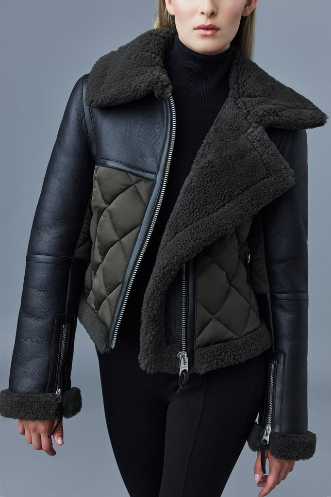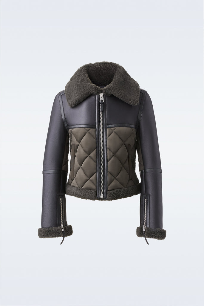 Veste en peau de mouton matelassée Tulip avec bordure en peau de mouton