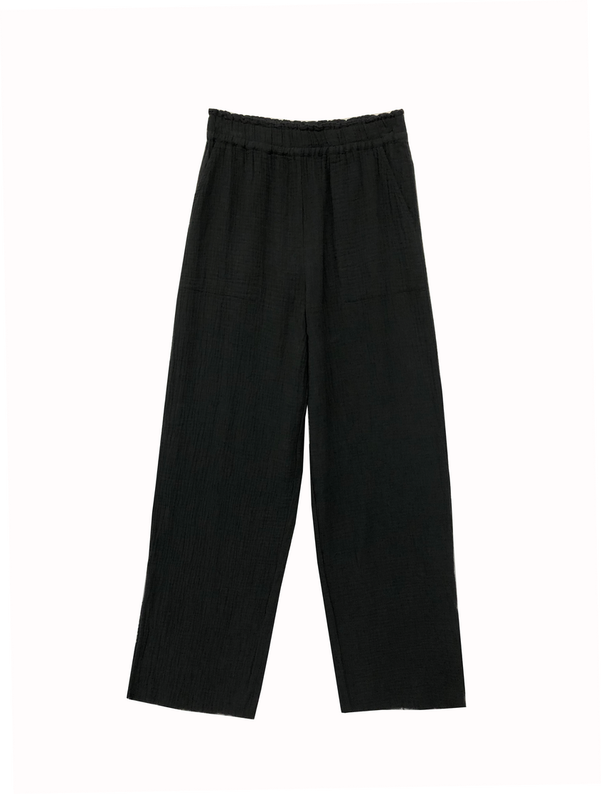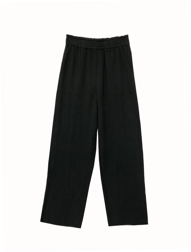 Rails, savamment confectionné à partir de coton double gaze, le pantalon Leon offre une sensation légère et douce dans un design à enfiler polyvalent. Avec des fentes latérales pour plus de style et une taille smockée pour un confort ultime, ce pantalon droit est parfait pour toutes les occasions.