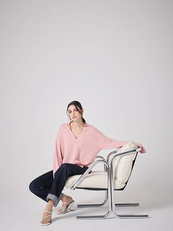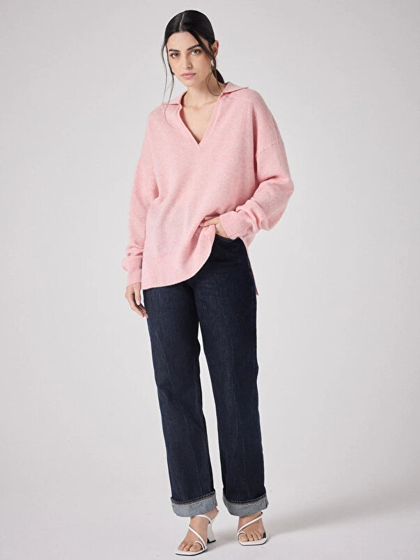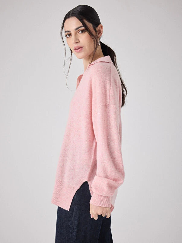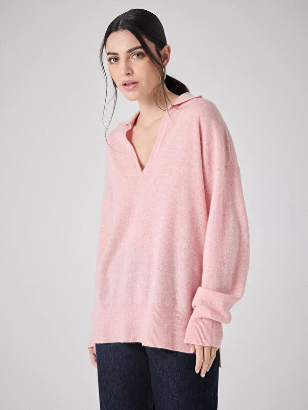 Elevate your wardrobe with the Romeo Cashmere Jumper by Notshy. This luxurious women's jumper boasts a polo collar and long sleeves, along with side slits and ribbed finishes for added style. The loose fit and 100% cashmere 2 ply jauge 12 jumper ensure comfort and sophistication.