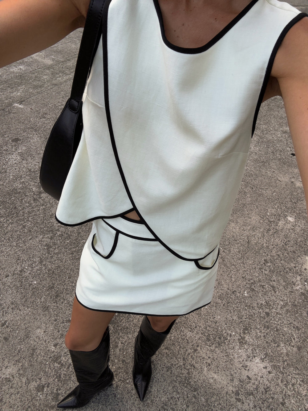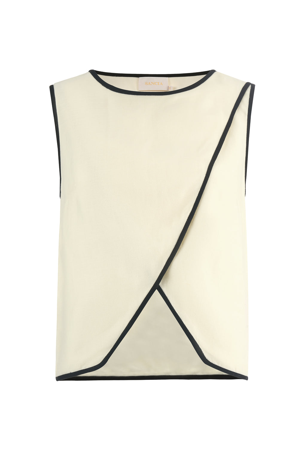 Indulge in luxury with the Artemis Top from Sancia. This refined tank features a high neckline and a unique overlapping front design, perfect for showcasing a statement belt. Pair it with the Loren Skirt for an effortlessly classy matching set. Elevate your style and elevate your confidence with the Artemis Top.
