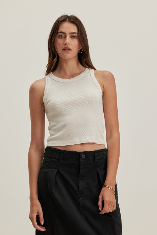 Indulge in the luxury of the Harla Cotton Slub Top from Velvet. Crafted from ribbed cotton slub, this tank top offers a fitted silhouette and cropped length, creating a casually chic look when paired with skirts or high-waisted bottoms. Experience the comfort and sophistication of this exclusive piece.