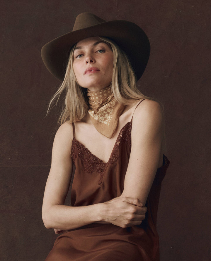 The Legacy Dress by The Great channels the refined elegance of 1920s lounge wear with its delicate embroidered mesh lace adorning the neckline and hem. Designed with adjustable straps for a perfect fit, this mid-calf dress layers effortlessly under sweaters and coats, making it a versatile addition as the seasons change.