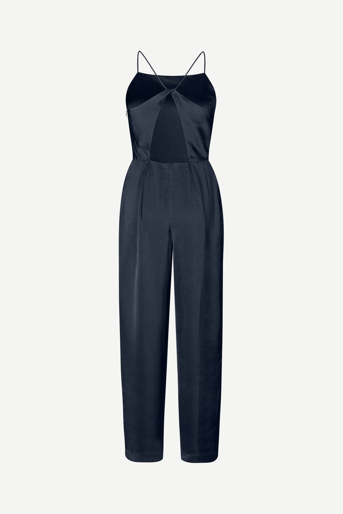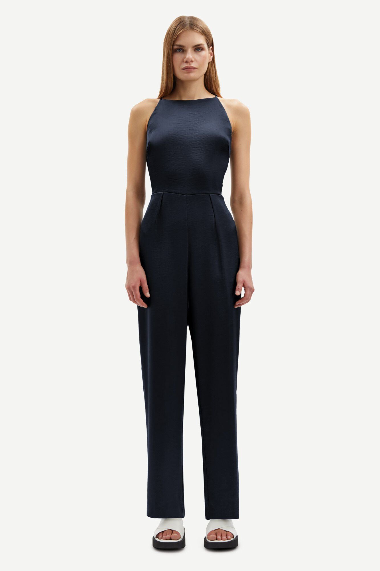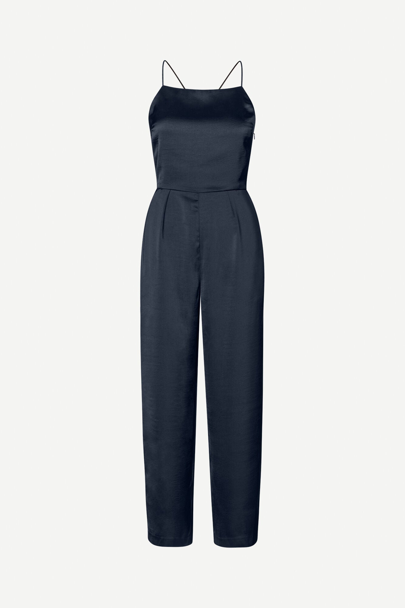 Elevate your style with the Samsøe Samsøe‘s Savilla Jumpsuit - a sleek and sustainable choice. Made from 100% recycled polyester, this satin jumpsuit features a high neck and open back, thin crossover straps, and pressed creases for a slim, polished look. Its GRS certification ensures ethical and environmentally-friendly production.