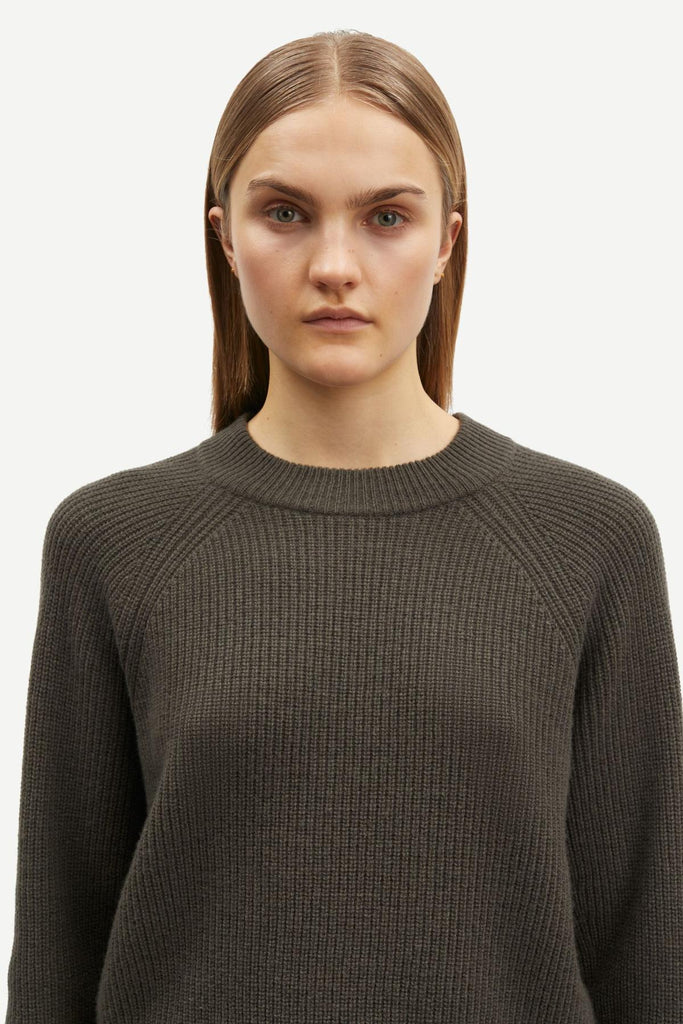 Indulge in luxury with the Sazlata Sweater by Samsøe Samsøe. Crafted with 100% merino wool, this knitted sweater boasts a regular fit and a chic cropped silhouette. Adorned with a rib-knitted collar, cuffs, and hem, it exudes sophistication. Plus, it is RWS certified ensuring ethical and sustainable practices from farm to final product.