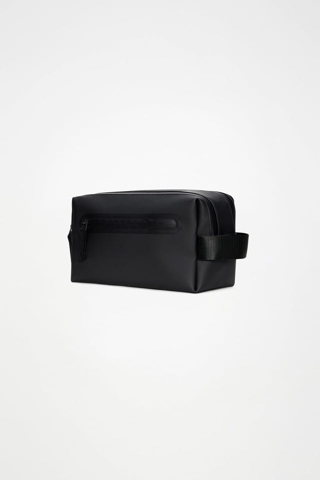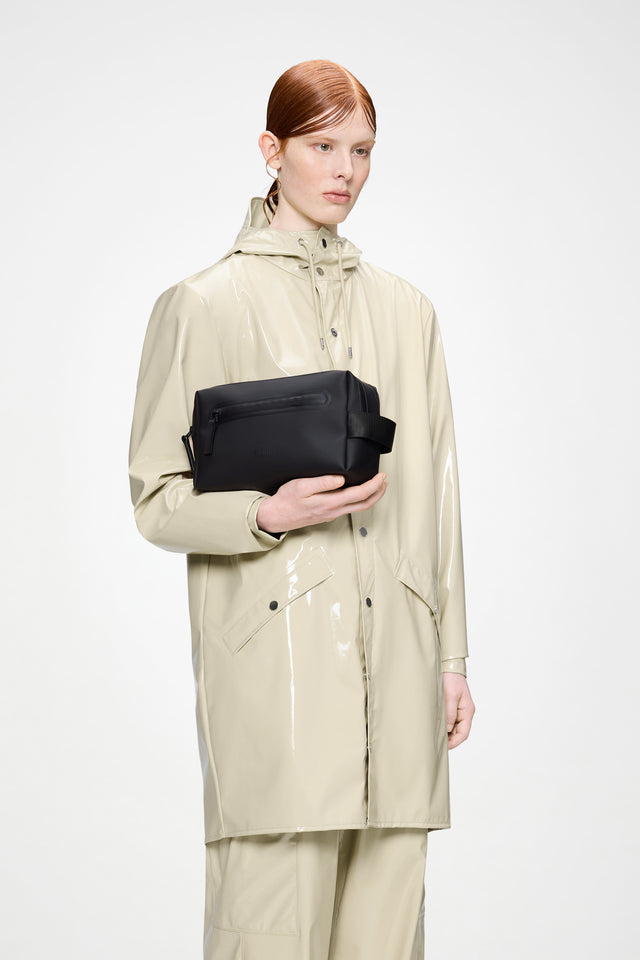 Clean, functional and built to move with you - with multiple secure compartments. The 2 Zip Wash Bag by Rains offers practical storage in a minimal silhouette, ideal for travel or everyday use. With two separate zip compartments, it allows for easy separation of grooming tools, makeup brushes, skincare or other small items. A zip-access front pocket keeps quick-grab essentials within reach, while a webbing side handle adds convenience on the go. The design is cut from Rains' signature waterproof PU fabric—engineered for durability, a smooth feel, and reliable protection in wet conditions.