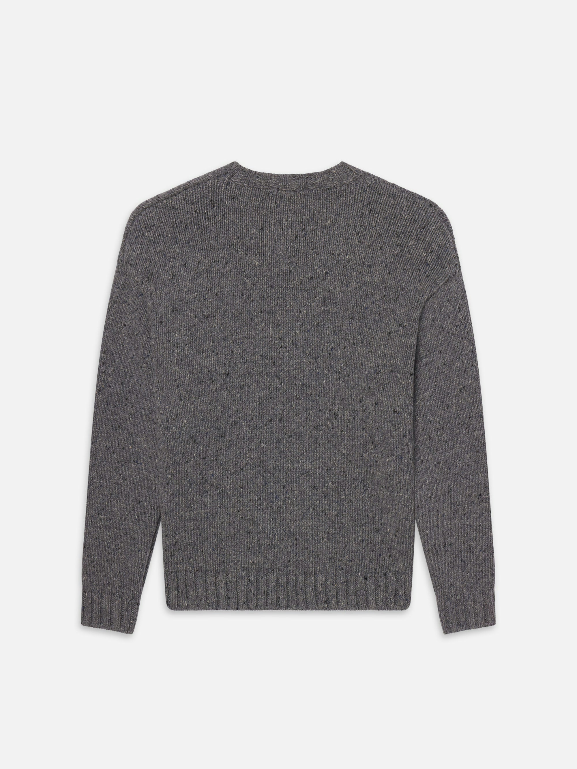 Crafted from a luxurious blend of merino wool and alpaca, this Sailor Sweater by Frame offers a refined texture with its subtle highs and lows, creating an elegant grey melange effect. Its heavier-weight knit ensures warmth and comfort, making it a sophisticated choice for cooler days.