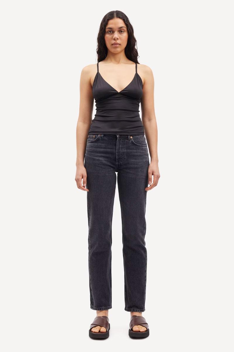 The Susan Jeans by Samsøe Samsøe embody effortless elegance with their refined mid-waist silhouette and timeless straight-leg cut. Crafted from 100% organic cotton, these jeans offer both comfort and environmental consciousness. The classic five-pocket design, belt loops, and secure button-zipper closure ensure versatile styling for any occasion. A sophisticated staple that transitions seamlessly from casual to polished looks.