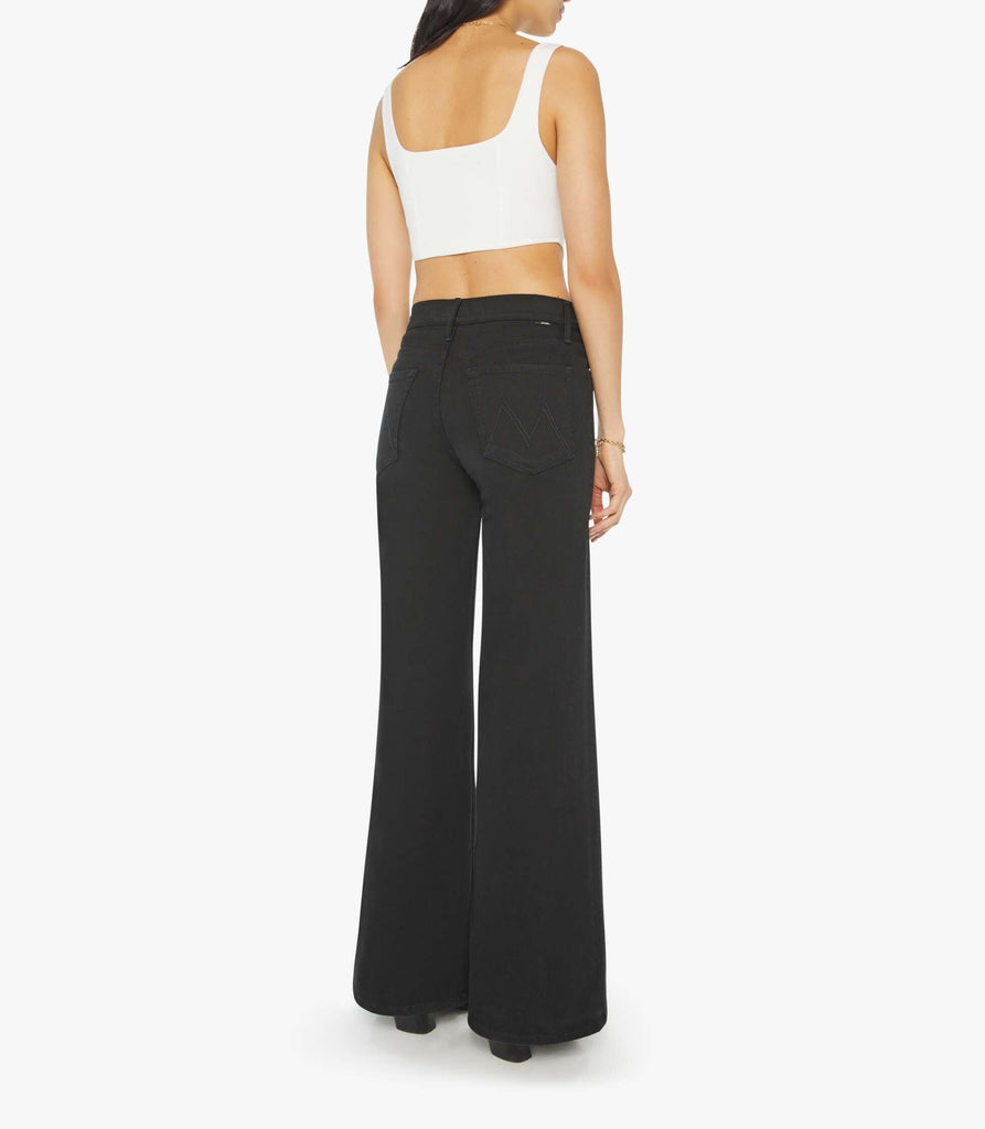 Elevate your denim game with MOTHER's Twister Sneak Jeans. These luxurious jeans feature a flattering high rise and a chic flare leg, perfect for any occasion. These Pitch black beauties are made from a recycled denim blend and offer both style and sustainability. Upgrade to a more sophisticated look with our exclusive design.
