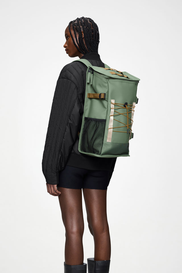 The Trail Mountaineer Bag by Rains combines rugged outdoor functionality with contemporary design. Its boxy silhouette and sporty aesthetic make it the perfect companion for adventure seekers and urban explorers alike. Built from Rains' signature PU fabric, this waterproof backpack delivers durability and a smooth finish that withstands the elements. The squared design opens to a generous main compartment, while a top-flap zip pocket and side mesh water bottle holder keep essentials organized and accessible. Compression webbing straps with mounted buckles secure your load, preventing shifting during movement. External bungee cords offer additional storage flexibility for gear that needs quick access. Padded shoulder straps and a stabilizing chest strap ensure comfortable, balanced carrying even when fully loaded. Whether you're tackling mountain trails or navigating city streets, the Trail Mountaineer Bag delivers the versatility and protection your adventures demand.